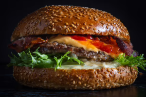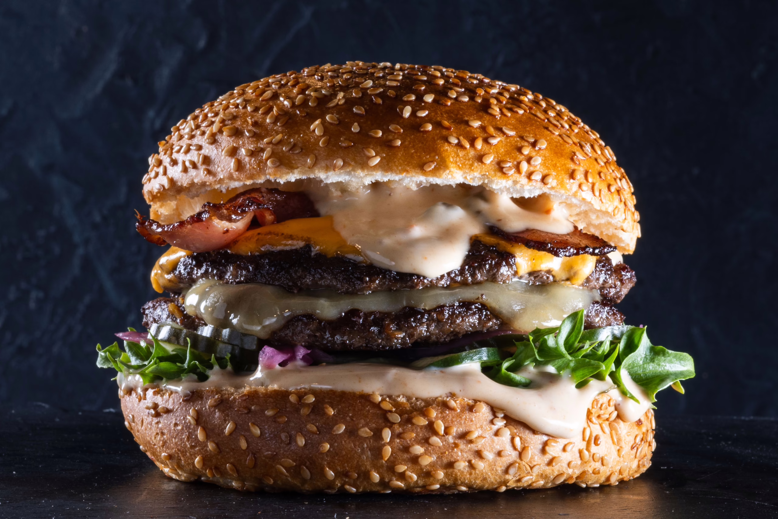 Two beef patties, cheddar cheese, Monterey Jack cheese, crispy bacon, chipotle mayonnaise, house pickle, lettuce, pickled red onion.