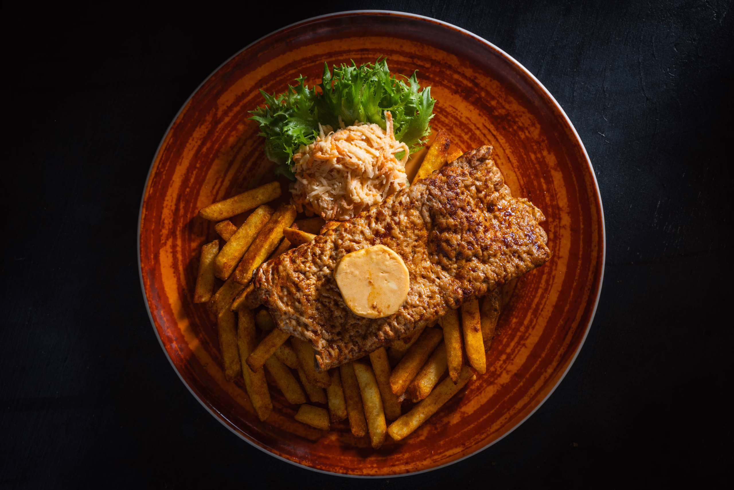 Grilled pork sirloin steak, Pancho’s compound butter, coleslaw