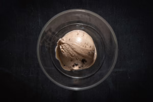 Piparkakkujäätelöä, suklaakastiketta, kermavaahtoa, piparimurua