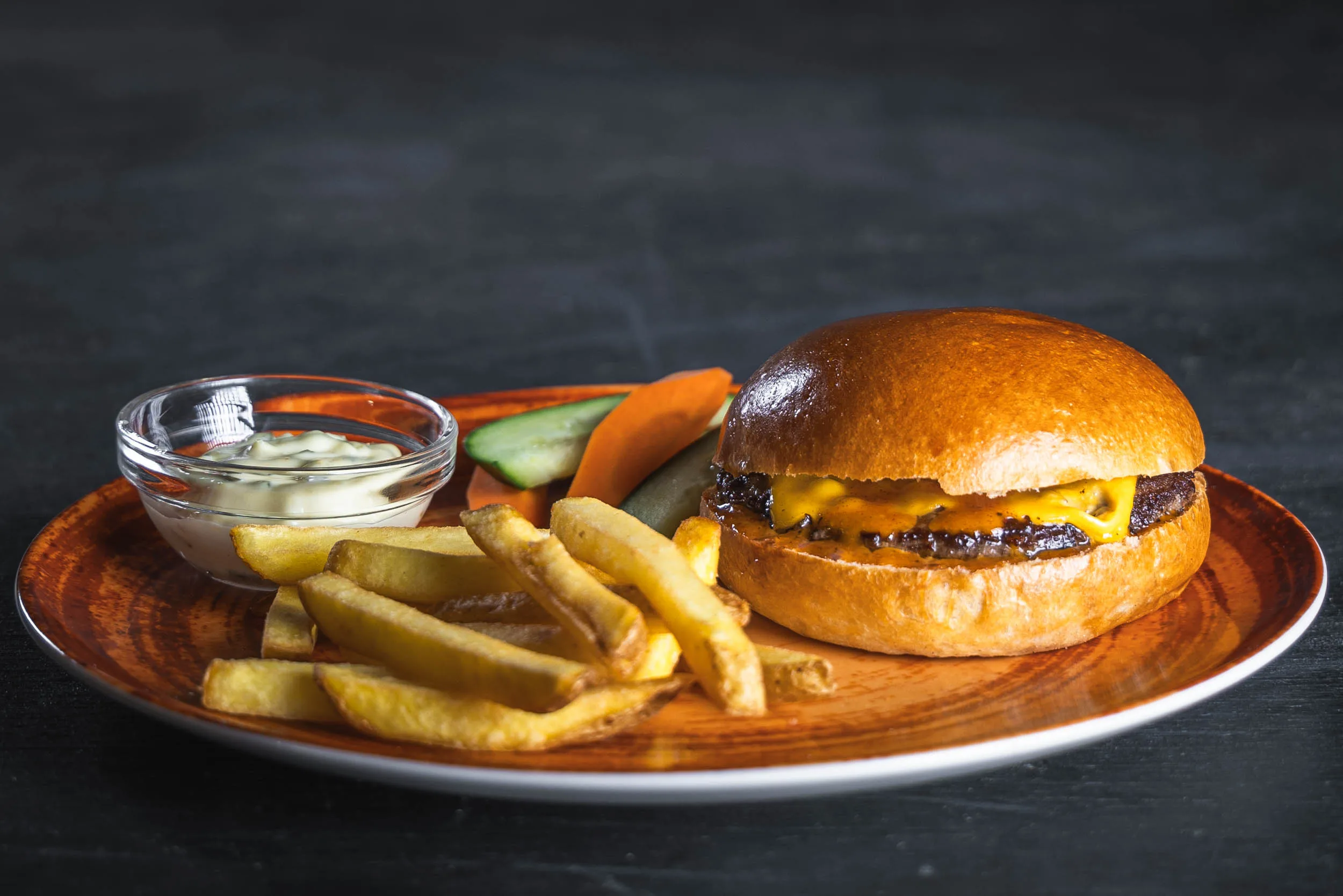 Pihvi, cheddarjuustoa, Panchon remua, kurkkutikkuja, porkkanatikkuja, kurkkumajoneesidippi, valitsemasi lisuke.