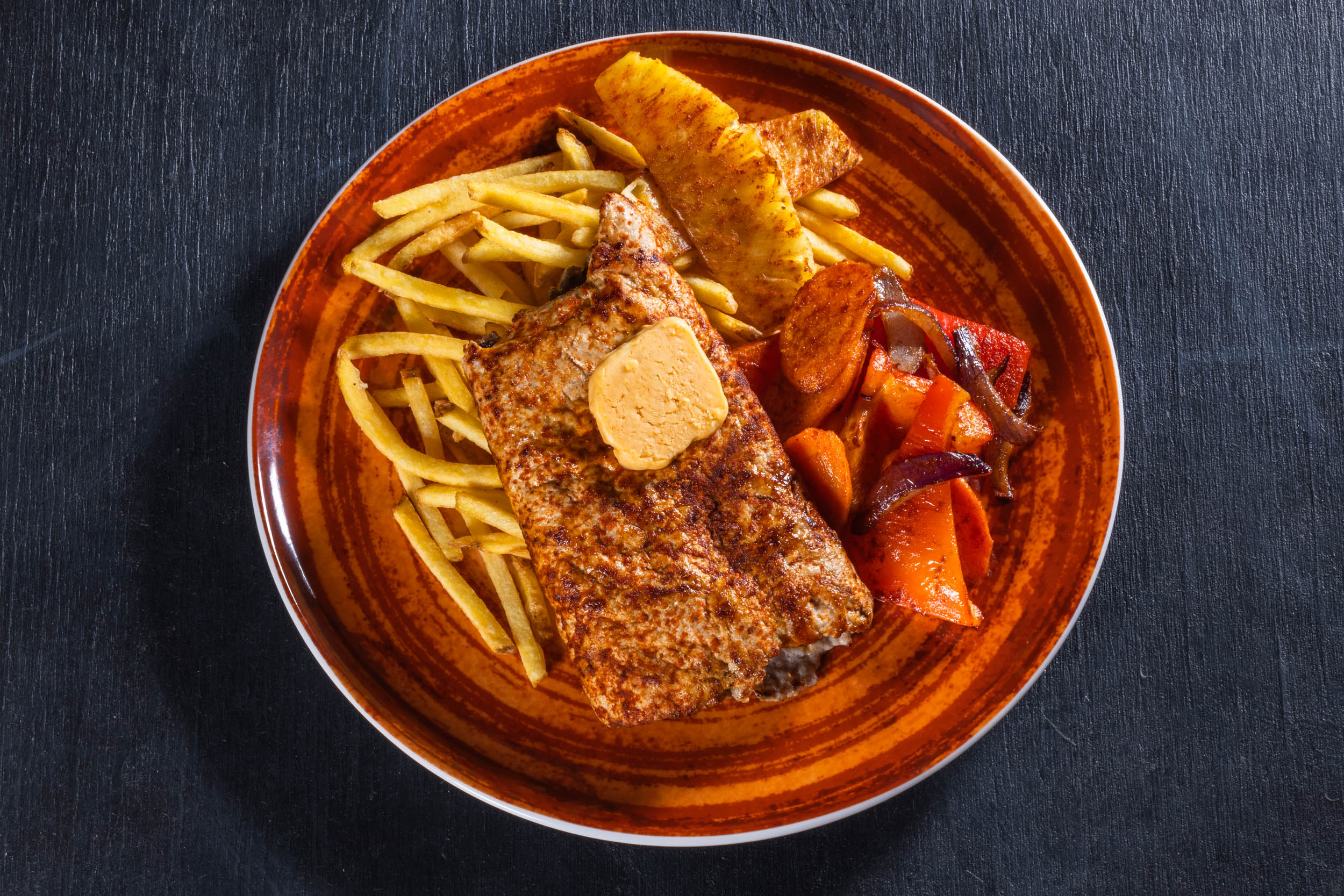 Annos sisältää valintasi mukaan Panchon thin & crispy friesit, Talon ranskalaiset, salaatin tai grillikasvikset. Perunoilla mukana Panchon remudippi.