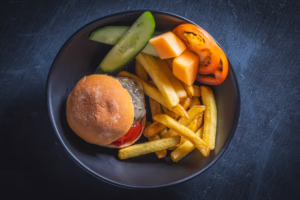 PGPortionen kan beställas glutenfriNötbiff, cheddarost, Pancho remu, sallad, marinerad rödlök.