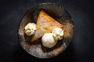 PGPortionen kan beställas glutenfriKnaprigt baconkross med varm ostsås.