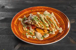 MMjölkfri portion,PGPortionen kan beställas glutenfri,VVeganskStor extra dippsås: 3,00 €
